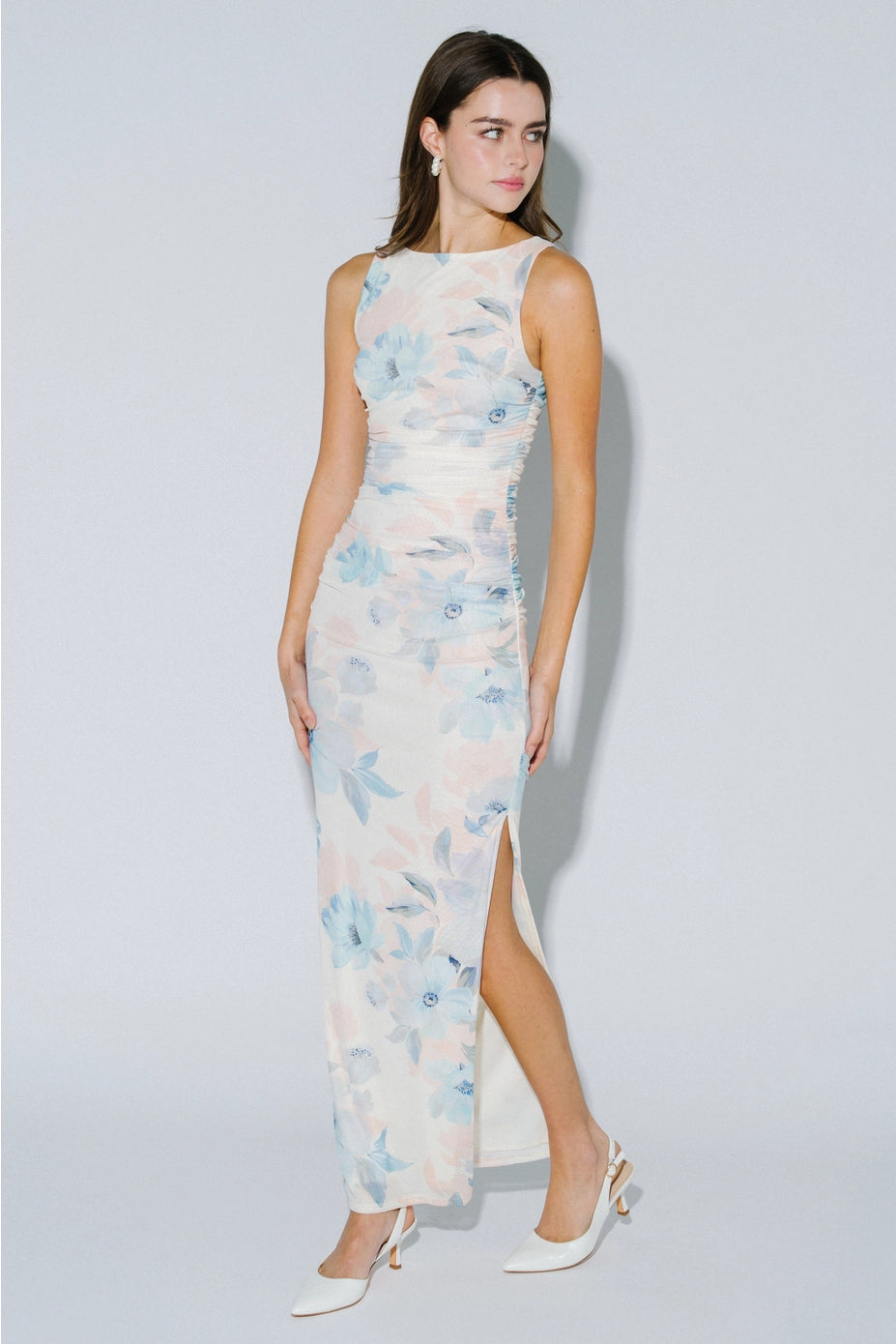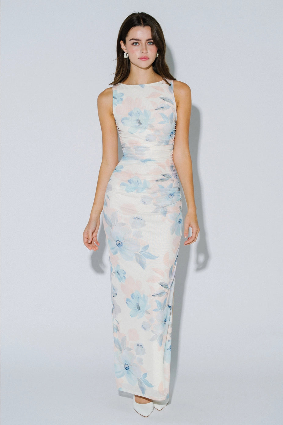 Romantic and ethereal, this mesh maxi dress features soft ruffle detailing that cascades for added movement and texture. Light and airy with a dreamy silhouette, it's perfect for special occasions or when you want to make an effortlessly feminine statement