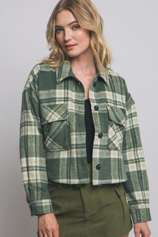 Detachable hood plaid shacket